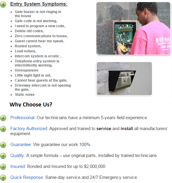 Telephone Intercom Systems: We troubleshoot existing telephone entry systems, intercom systems and gate communication devices. And, if your system is beyond repair Duncanville Electric Gate Repair can install a new one right away.